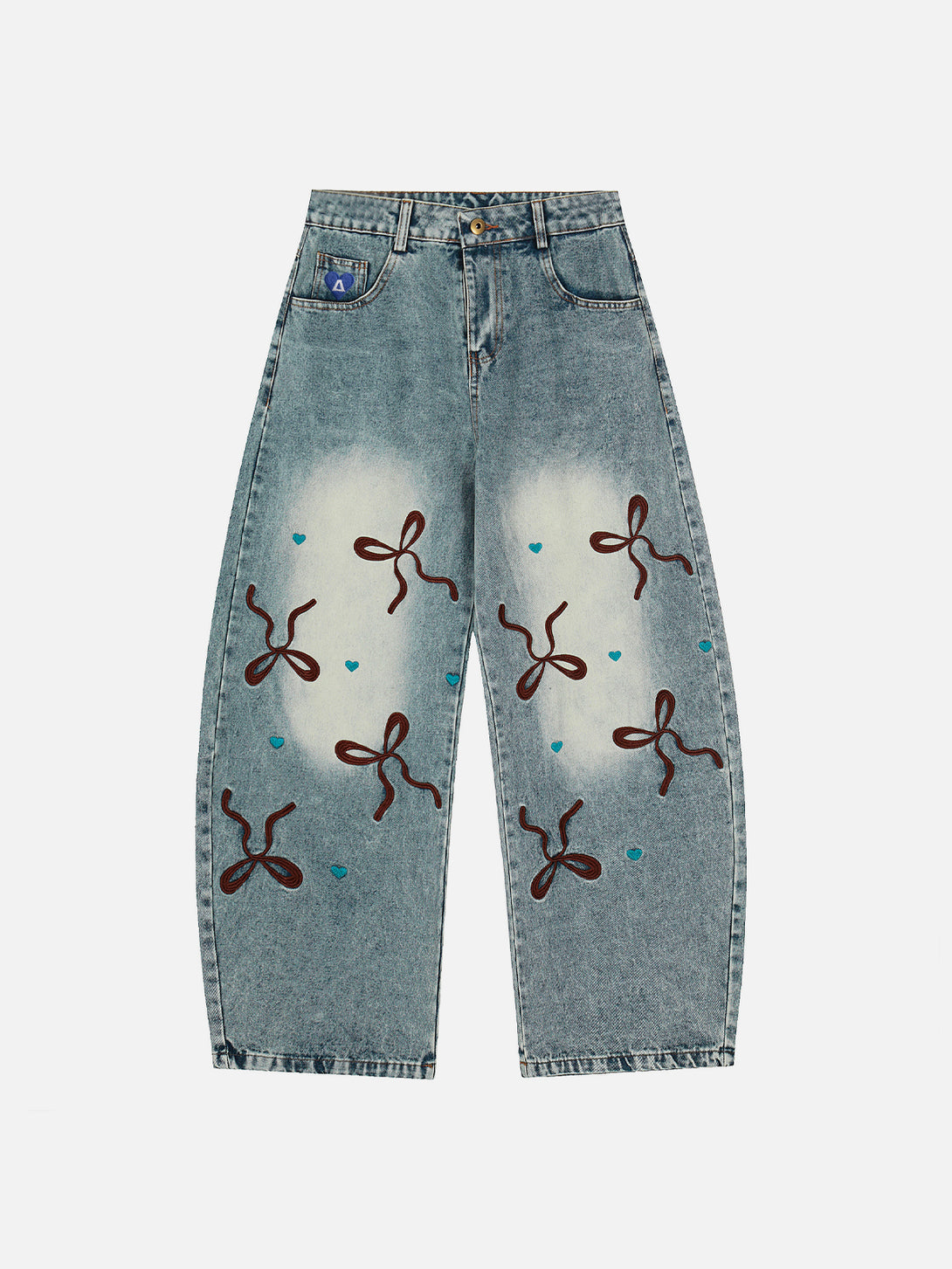 Delicate embroidery and a playful ribbon detail enhance these Bow Baaggy Barrel Jeans, combining a relaxed, oversized silhouette with a stylish, street-ready edge.