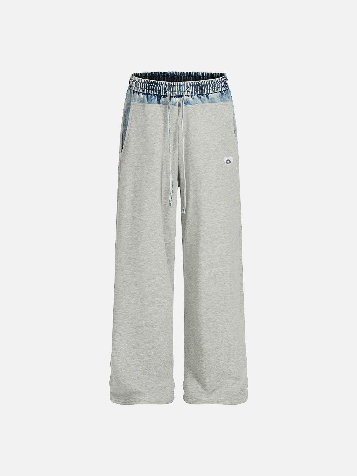 Blending comfort with street-ready attitude, these baggy sweatpants feature a soft grey sweat fabric body contrasted with a denim panel waistband. The hybrid design adds visual depth while keeping the relaxed feel of classic sweatpants. Cut in an easy, baggy silhouette, they drape naturally for an effortless streetwear look. Finished with an elastic waist and adjustable drawstring, this pair balances everyday comfort with a subtle denim edge, ideal for casual fits or layered street styling.