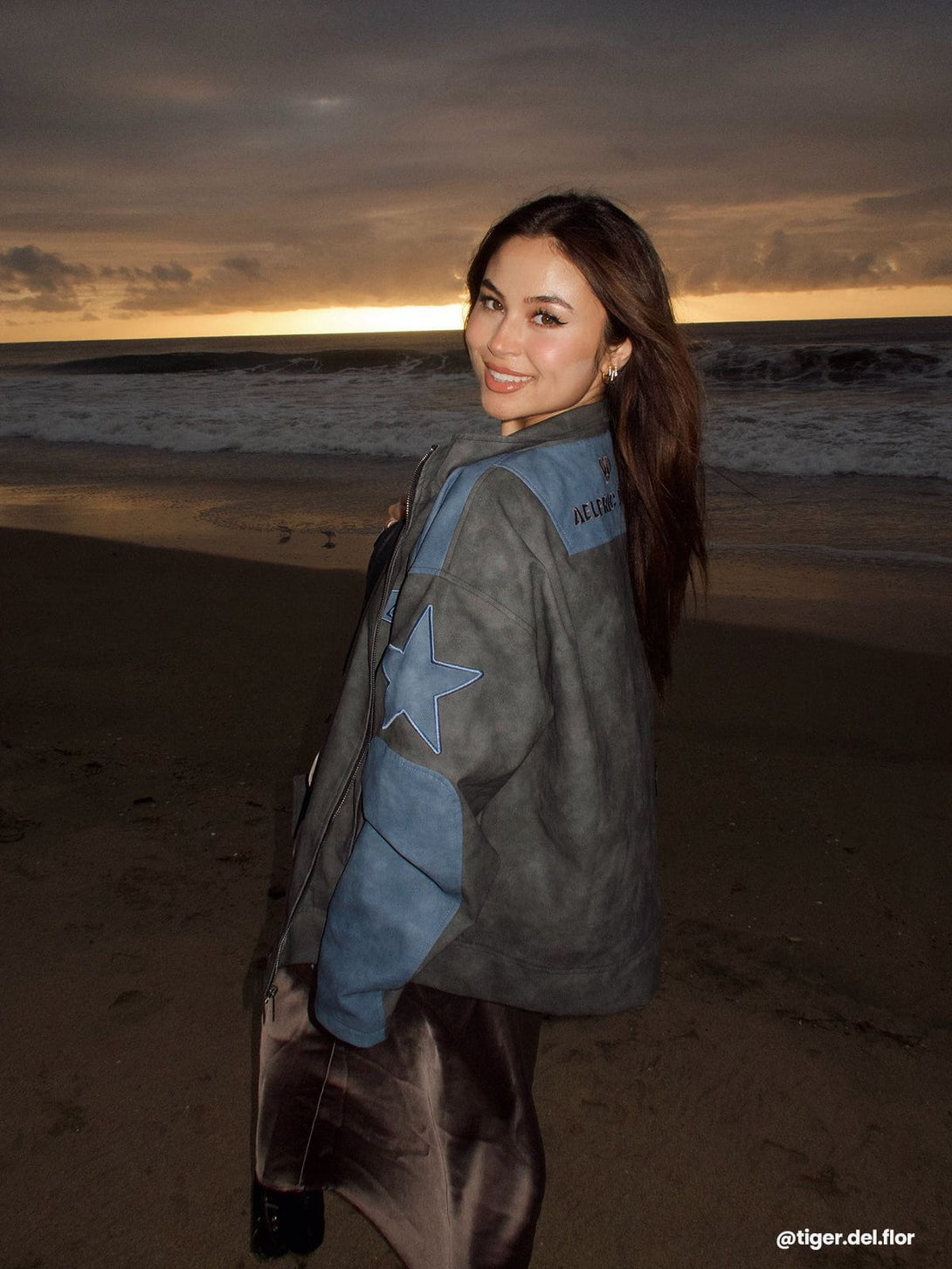 Featuring embroidered stars and a cropped design, it's well-crafted and a stylish piece. The bold color-blocked design adds a touch of style, while the short cut offers a glamorous silhouette.