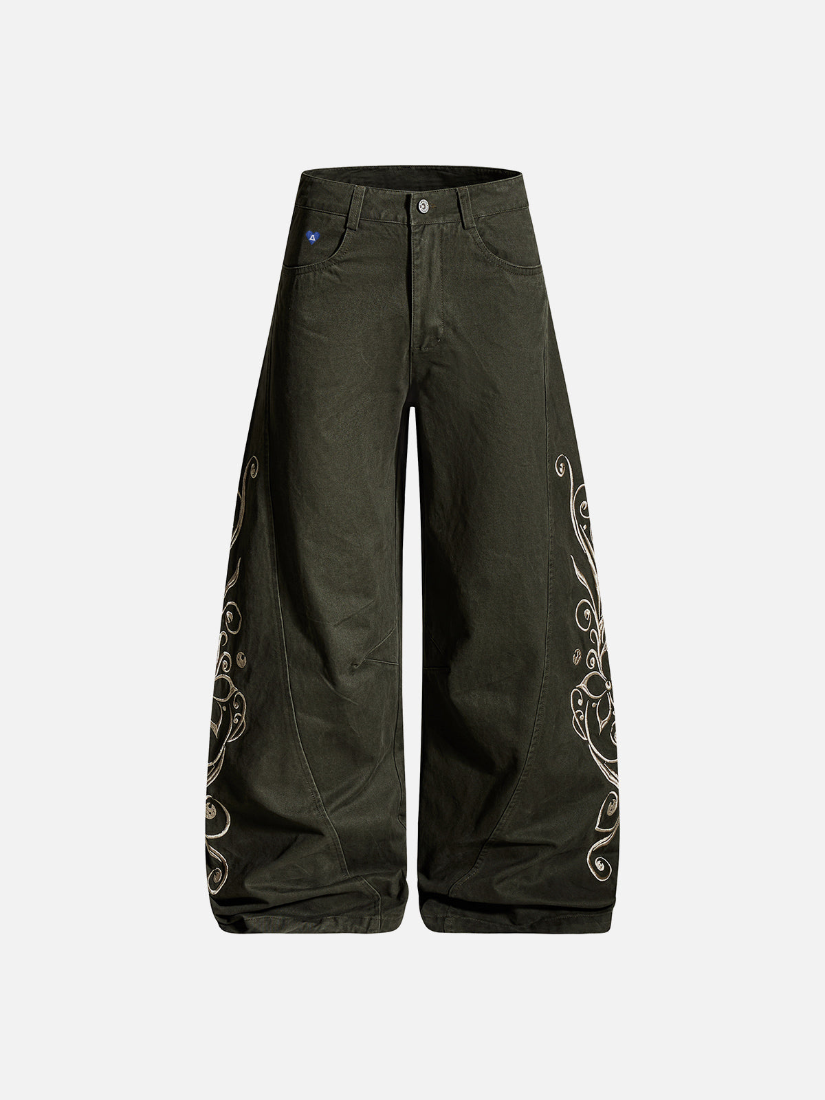 The Aelfric Eden Floral Baggy Barrel Jeans feature bold embroidery that adds artistic detail to the relaxed, barrel-shaped silhouette. Soft denim and a roomy fit bring all-day comfort, while the floral stitching creates a standout look with effortless style. A perfect mix of casual ease and expressive craftsmanship.