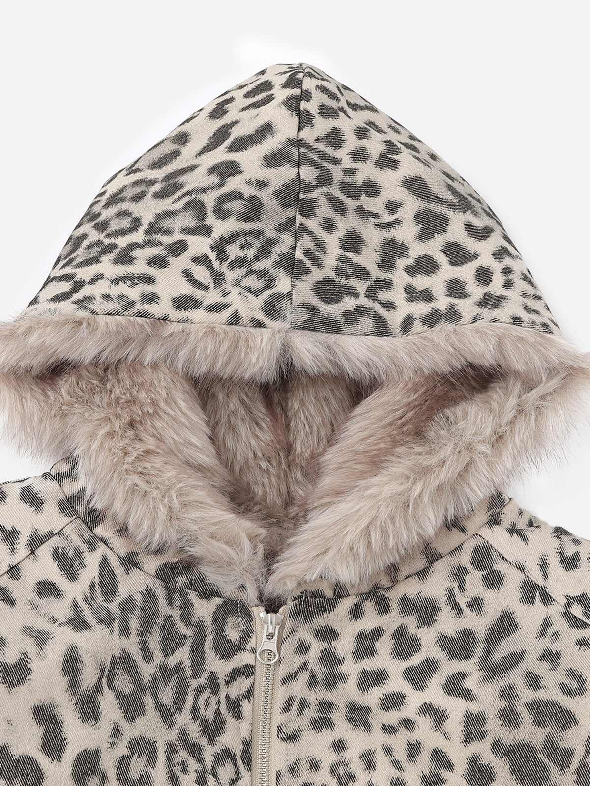 Clothing details: Leopard Graphic, Faux Fur Patchwork.