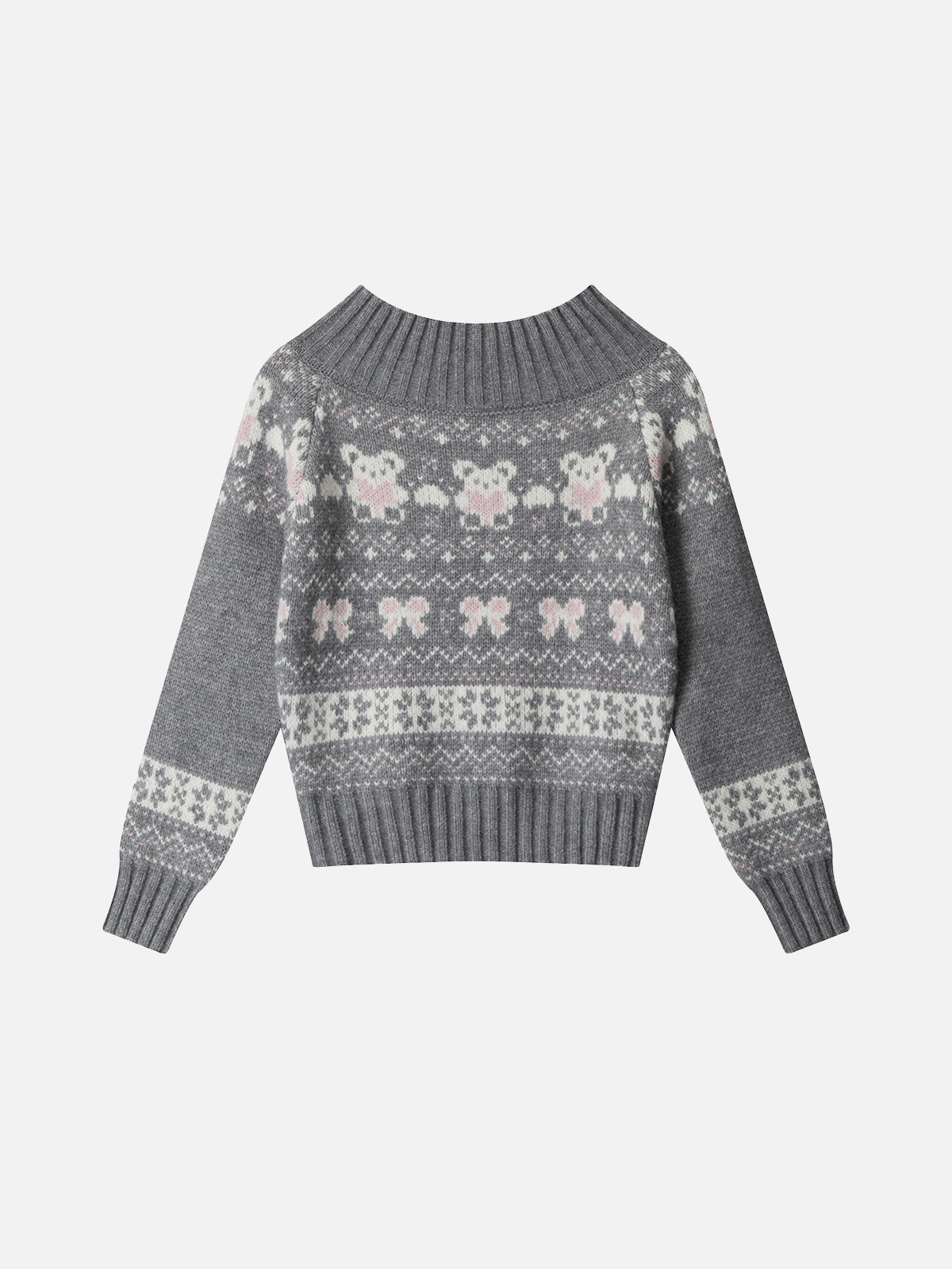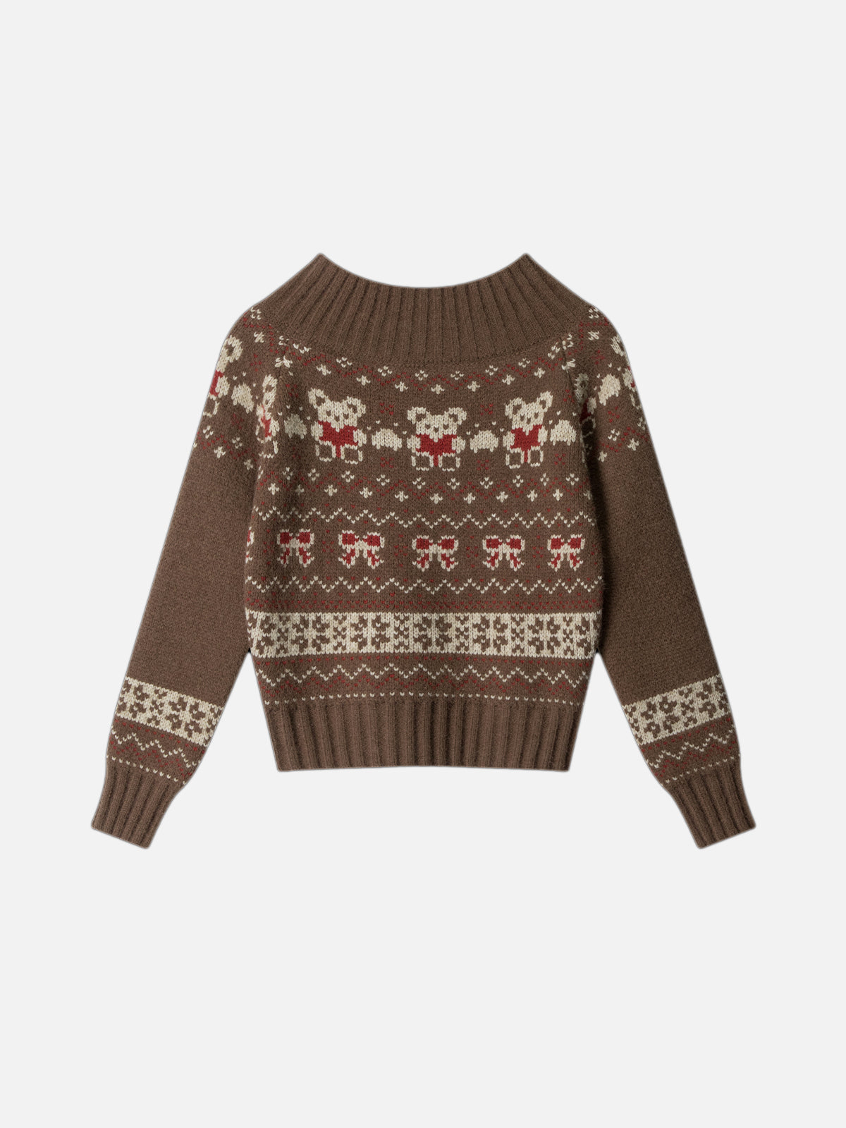 Cozy with a playful twist, the Aelfric Eden Off-The-Shoulder Fair Isle Sweater blends classic winter patterns with cute bear and bow details. The off-shoulder design adds a stylish, feminine touch, while the soft knit keeps it warm and comfortable. A perfect mix of sweet and seasonal charm.