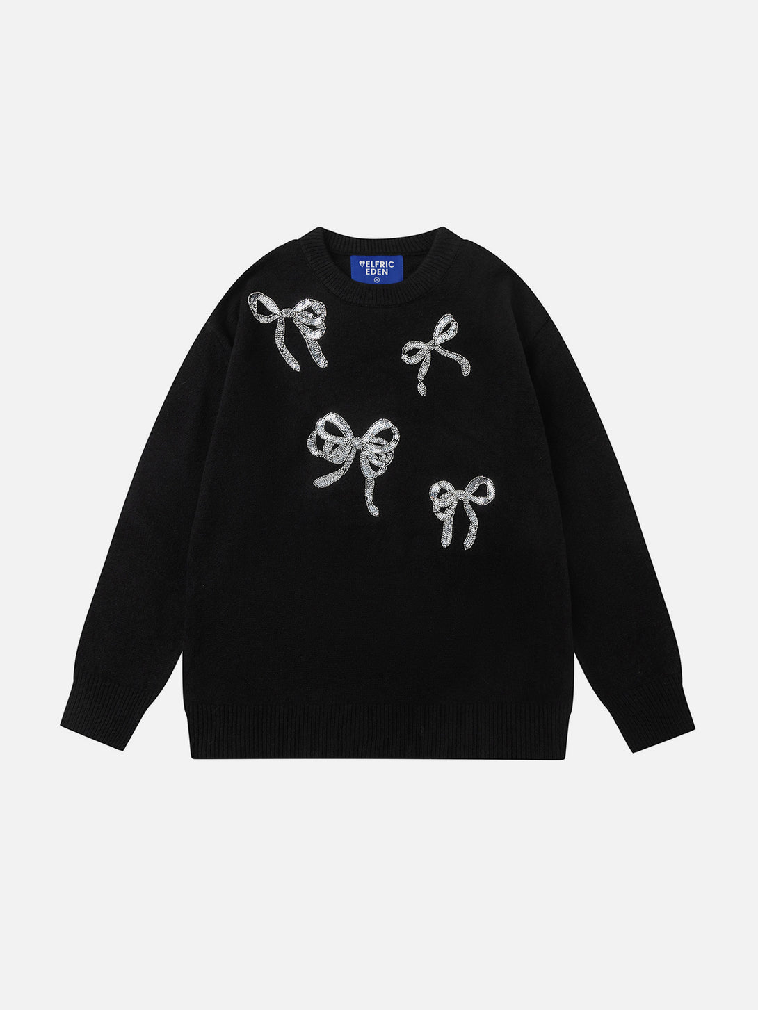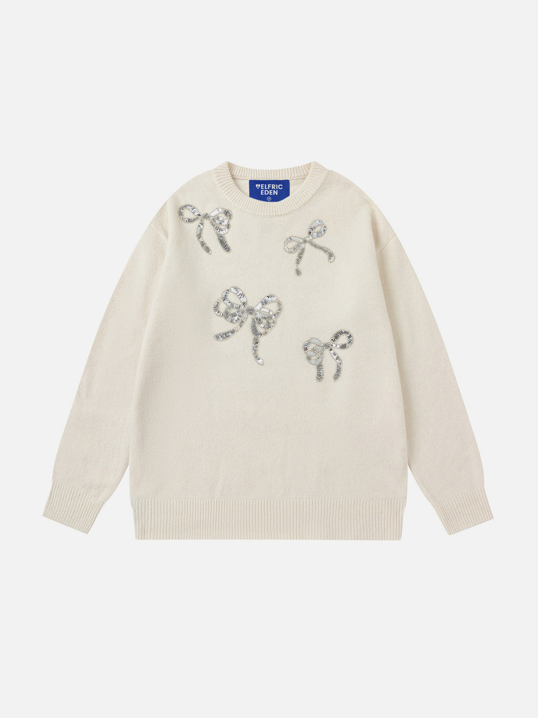 This Sequins Bow Sweater features delicate details Sequins that add subtle sparkle and texture to its elegant bow design. Crafted for comfort and warmth, it offers a cozy fit that supports your style with a gentle, refined touch. Perfect for adding a bit of shine to your everyday wardrobe while staying comfortable.