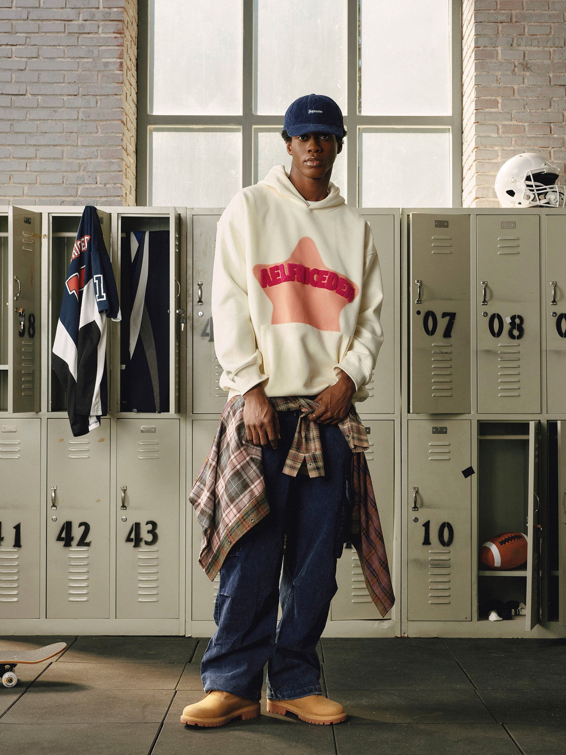 Statt des eintönigen Rückendesigns von früher leuchten auf dem Hoodie nun leuchtende Retro-Sticksterne. Zieh ihn an und du bist der hellste Stern in der Menge.