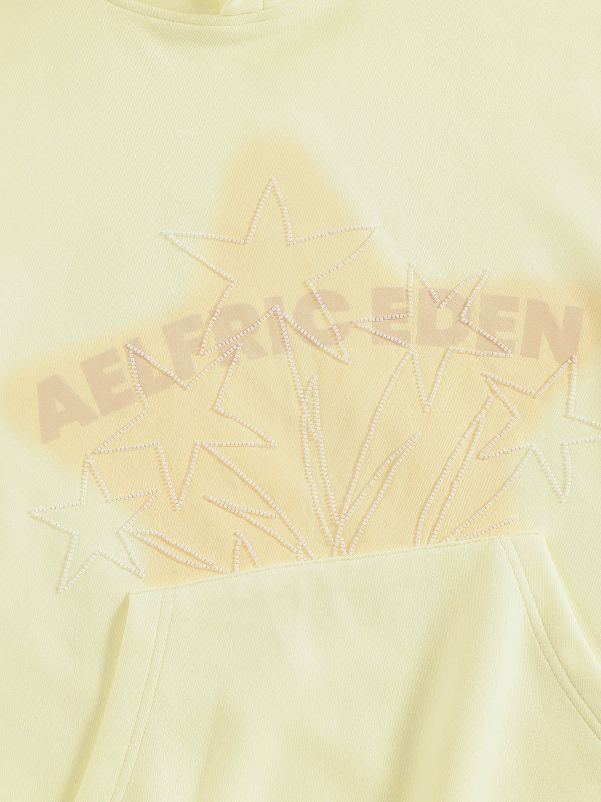 Inspired by the brilliance of the Eden Star, this hoodie radiates with a soft pastel hue and beaded embroidery that catches the eye with subtle shine. The Boxy silhouette and premium cotton blend make it a go-to essential for both streetwear layering and everyday chill fits.