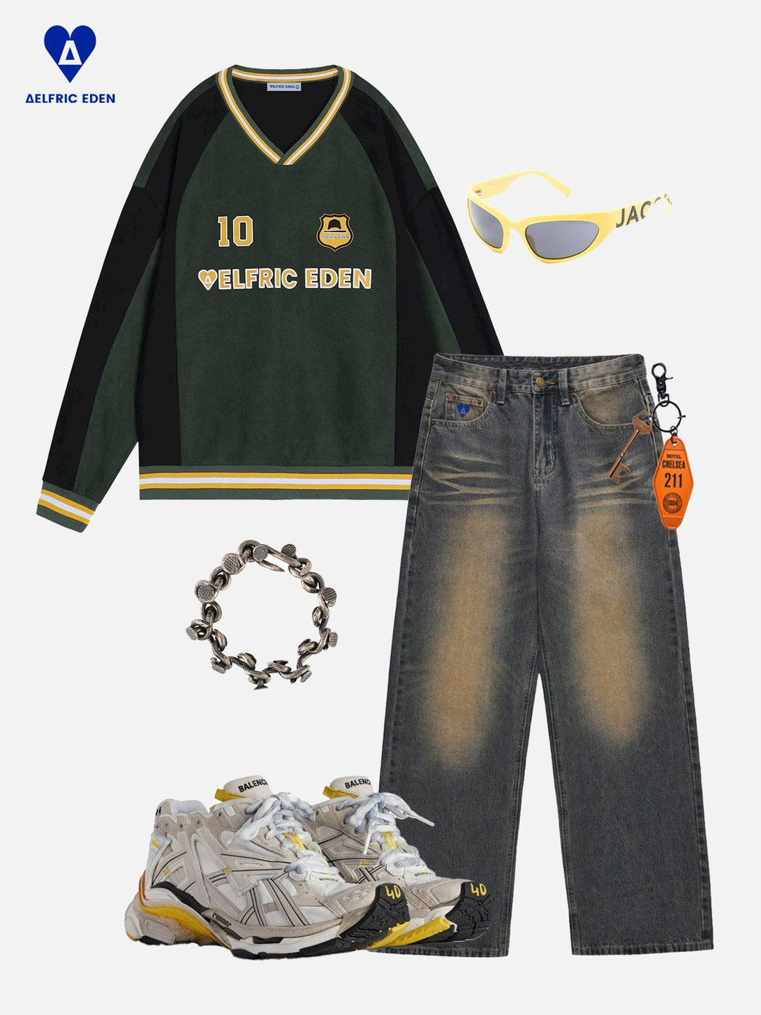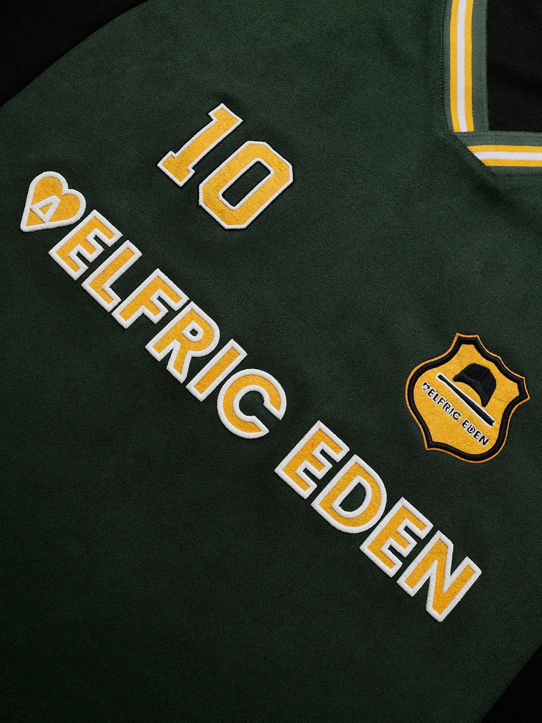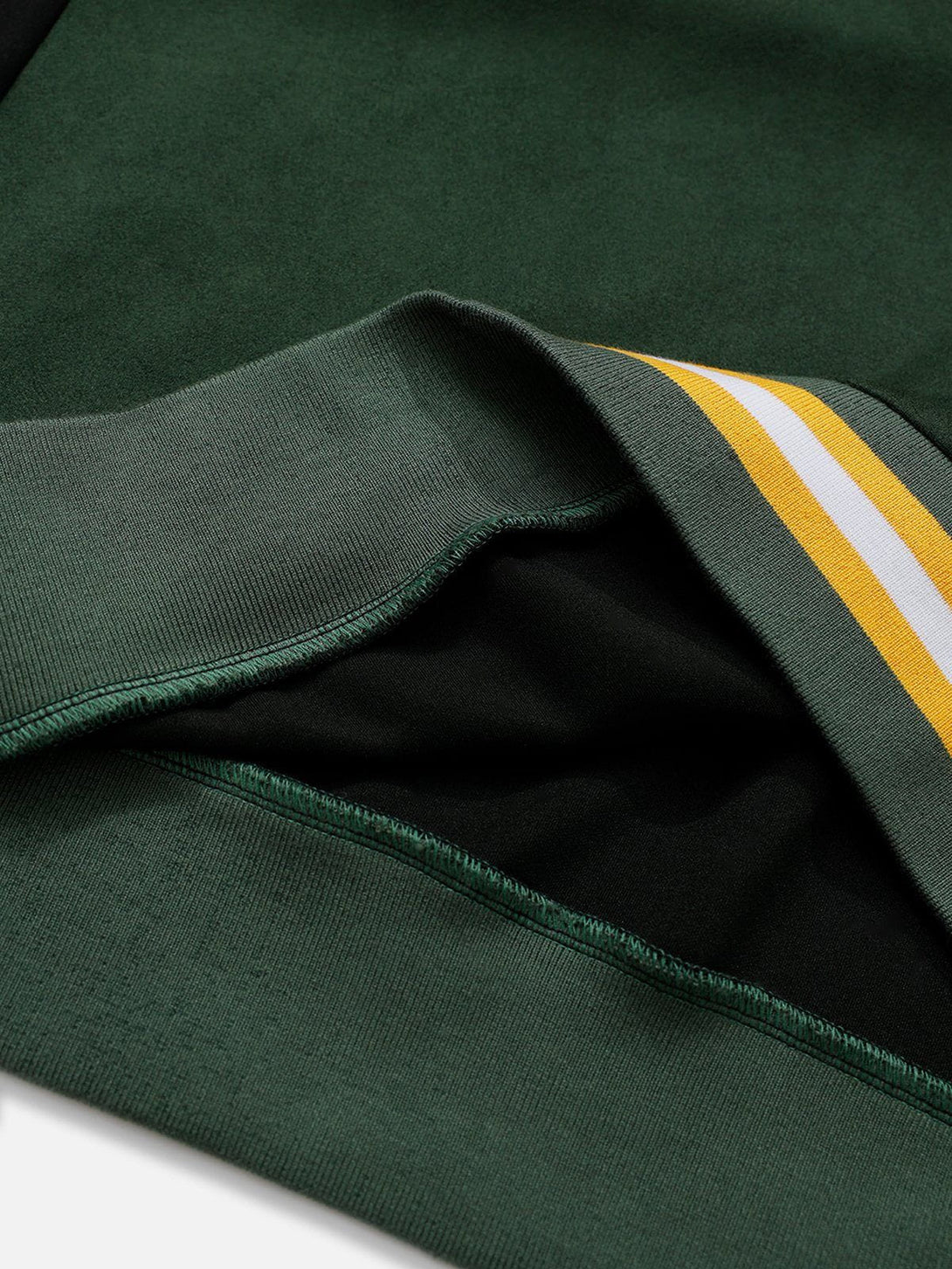This sweatshirt features a bold color-blocking design with contrasting green and black tones, complemented by embroidered details for added texture and style. Crafted from soft suede fabric, it offers a luxurious feel and a relaxed fit.?