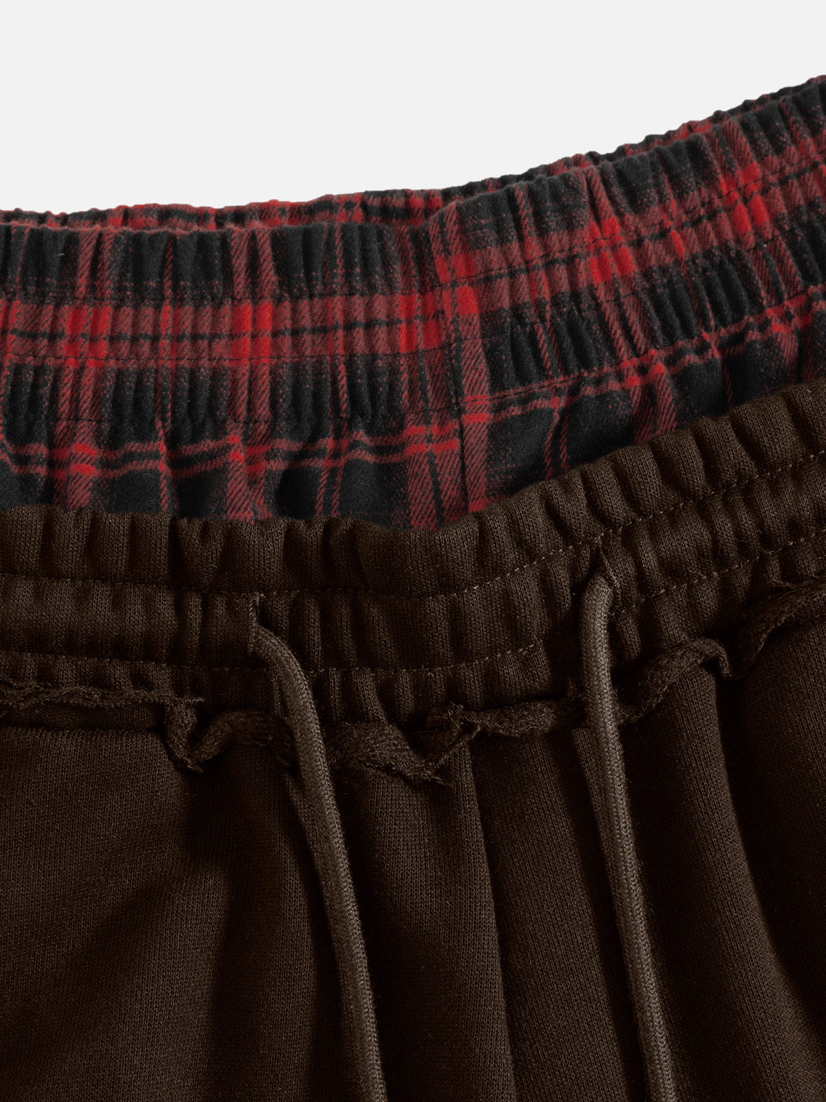 Your pants are about to fall down? Hey, buddy, this is the new fashion! With a double waistband design and plaid patchwork, these pants don’t just stay up—they elevate your style. Long enough to boost your leg proportions, they’re ready to spark a retro storm. We recommend cold water washing and hanging dry to maintain the garment’s original fit and quality.