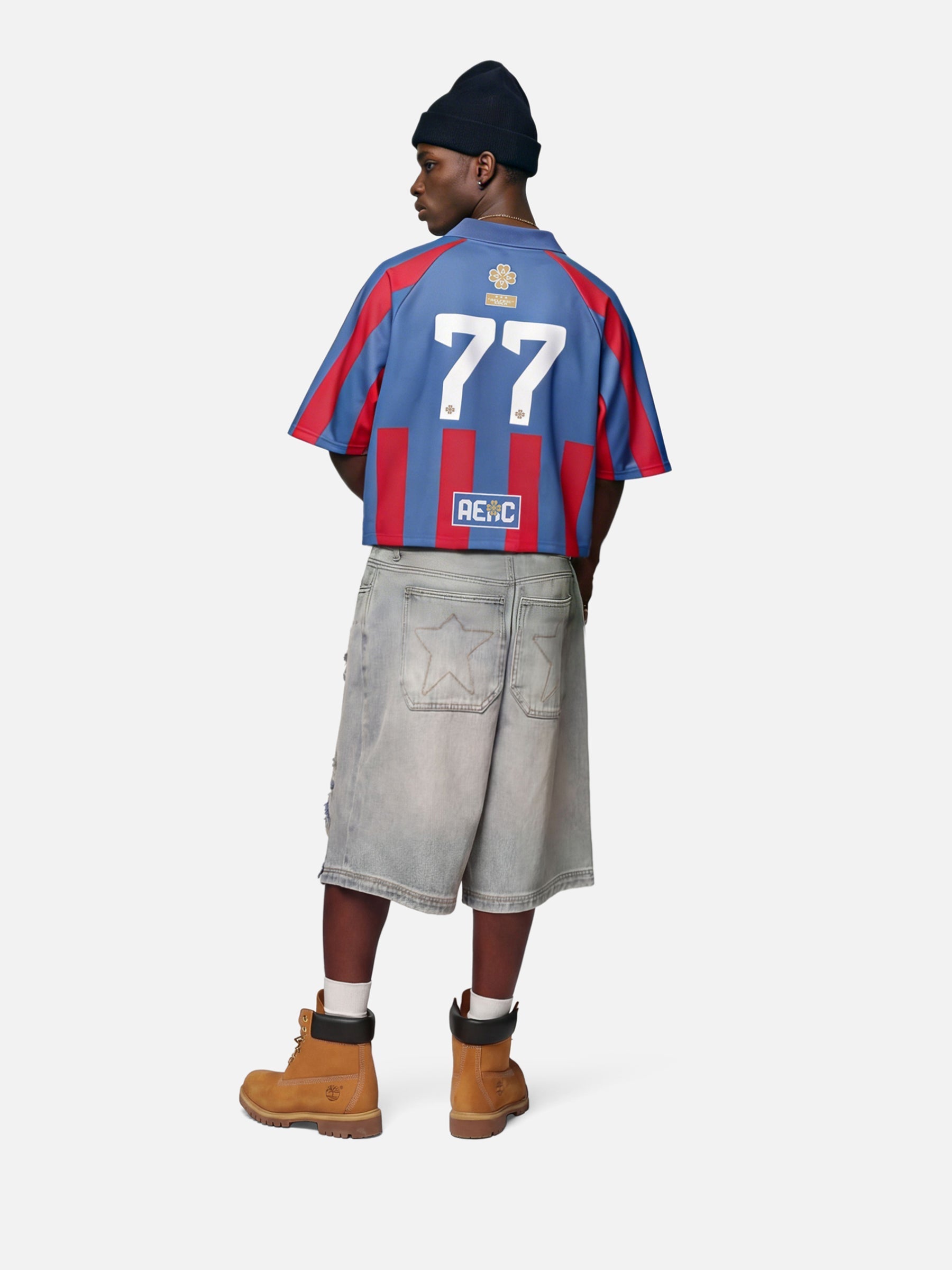 Built with a boxy jersey silhouette, this tee features classic football stripes, bold back numbering, and dual chest badges that create a clear sense of identity. Structured like a real kit, it stands on its own—confident, complete, and grounded in a street-driven team mindset.