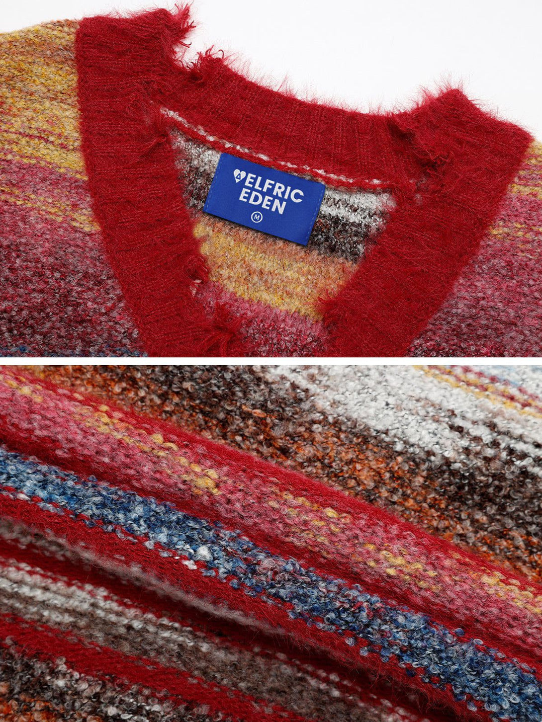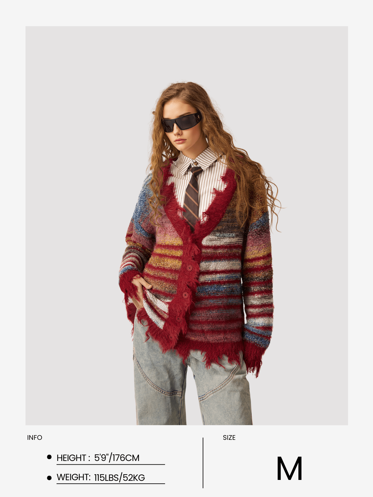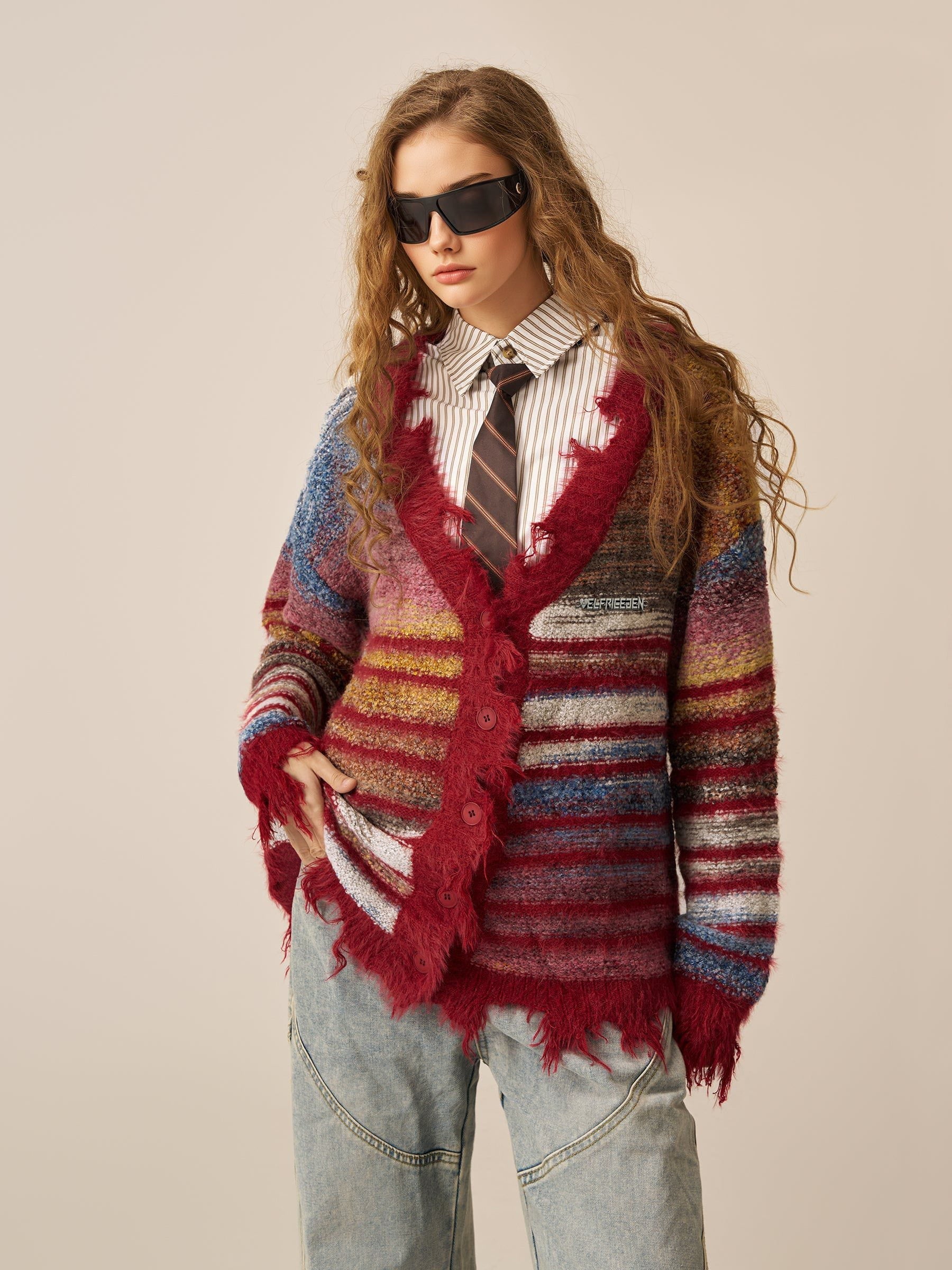 Gönnen Sie sich endlose Stilmöglichkeiten mit Aelfric Edens Fringe Gradient Pinstripe Cardigan. Entdecken Sie mit den zahlreichen Tragemöglichkeiten Ihren einzigartigen Sinn für Mode und heben Sie Ihre Garderobe auf ein neues Niveau der Raffinesse. Dieser luxuriöse Cardigan verleiht jedem Outfit einen Hauch künstlerischen Flairs.