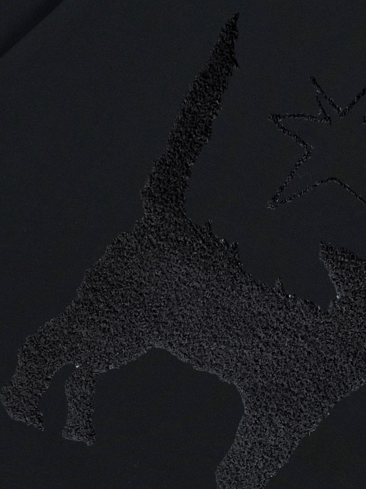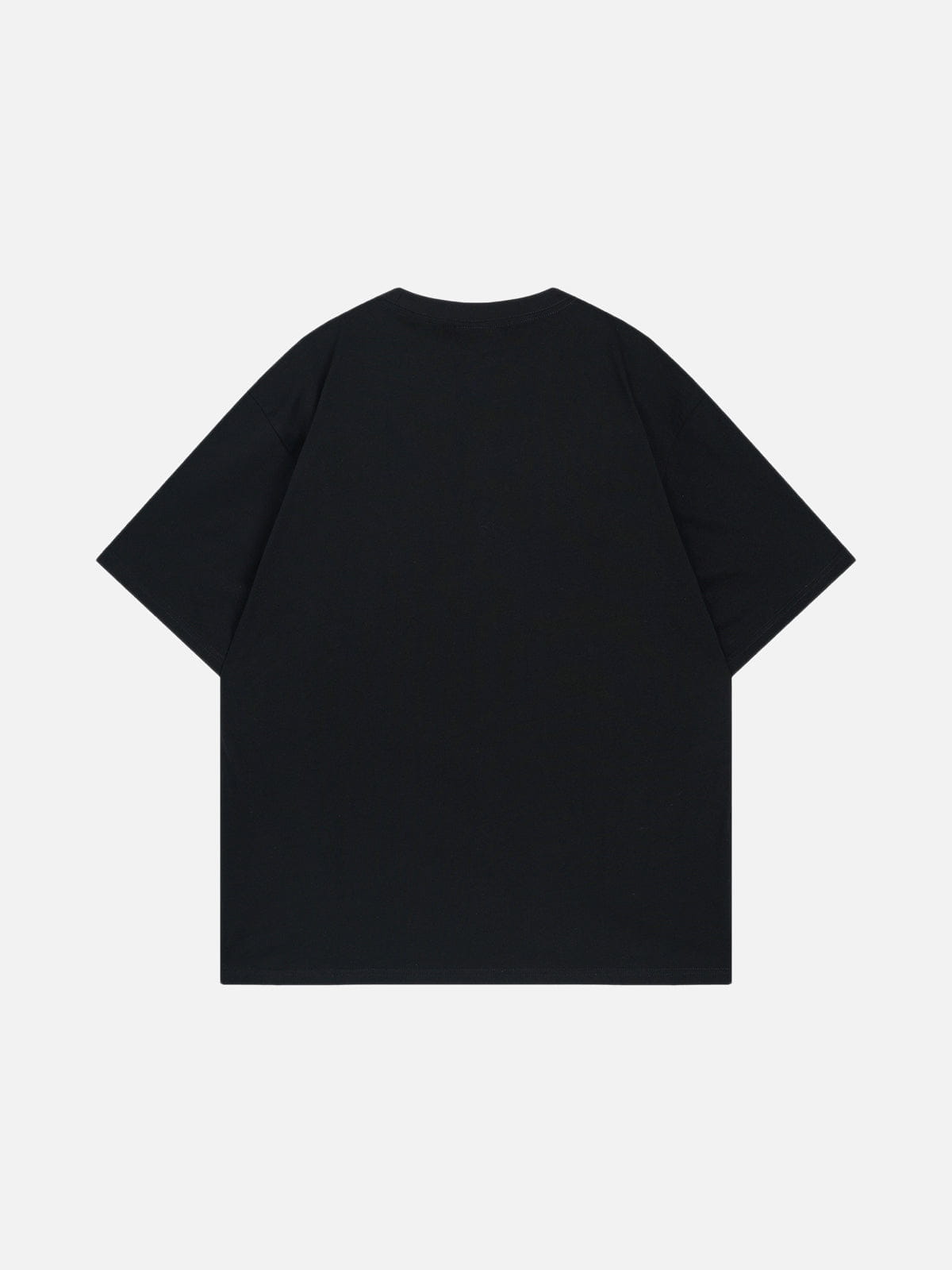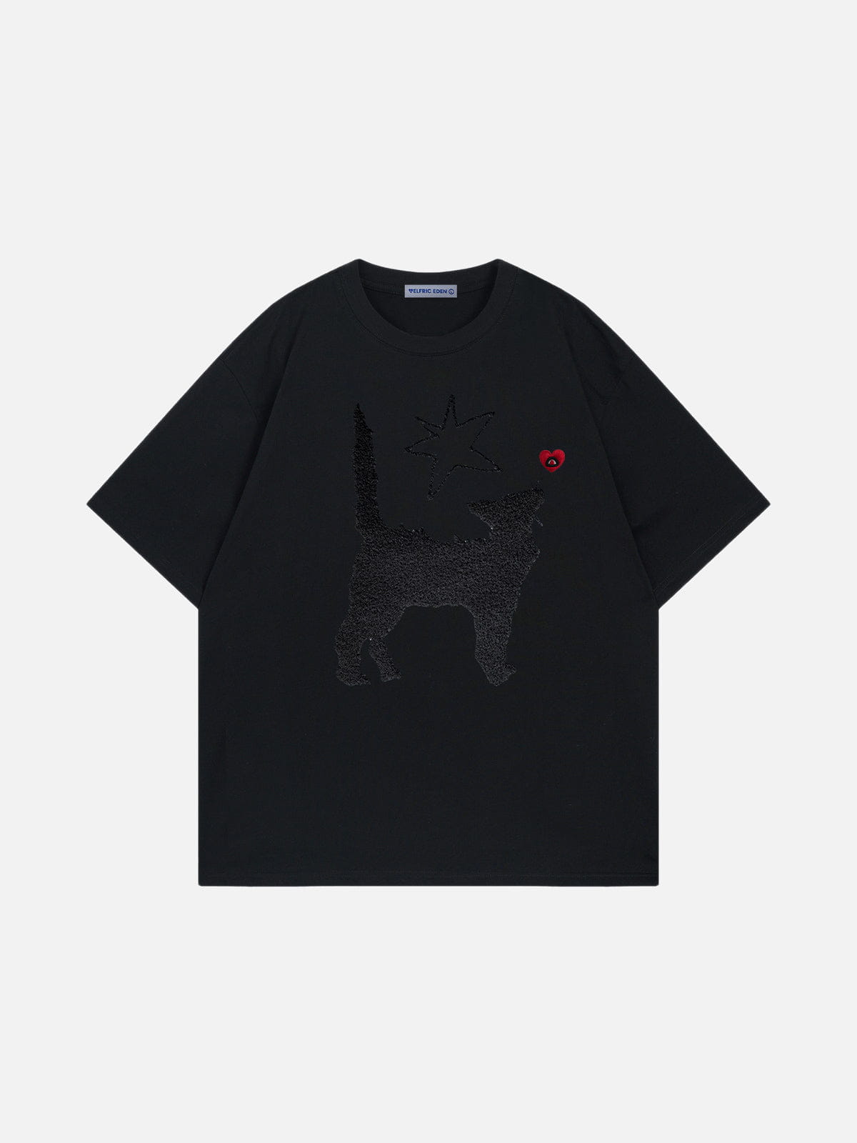 Tee featuring a fuzzy cat silhouette placed at the center front. A hand-drawn style star outline appears above the cat, forming a simple graphic composition across the chest.