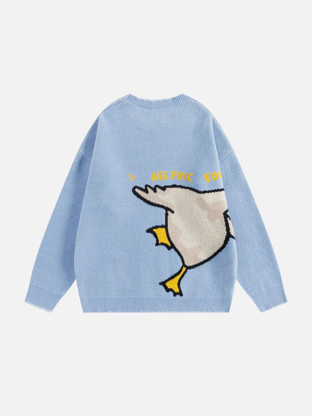The Aelfric Eden Goose Jacquard Sweater combines charming hand-drawn details with a playful cartoon style, creating a cozy piece full of personality. Designed to keep you comfortable while adding a fun, artistic touch to your wardrobe, this sweater supports your casual look with warmth and unique charm.