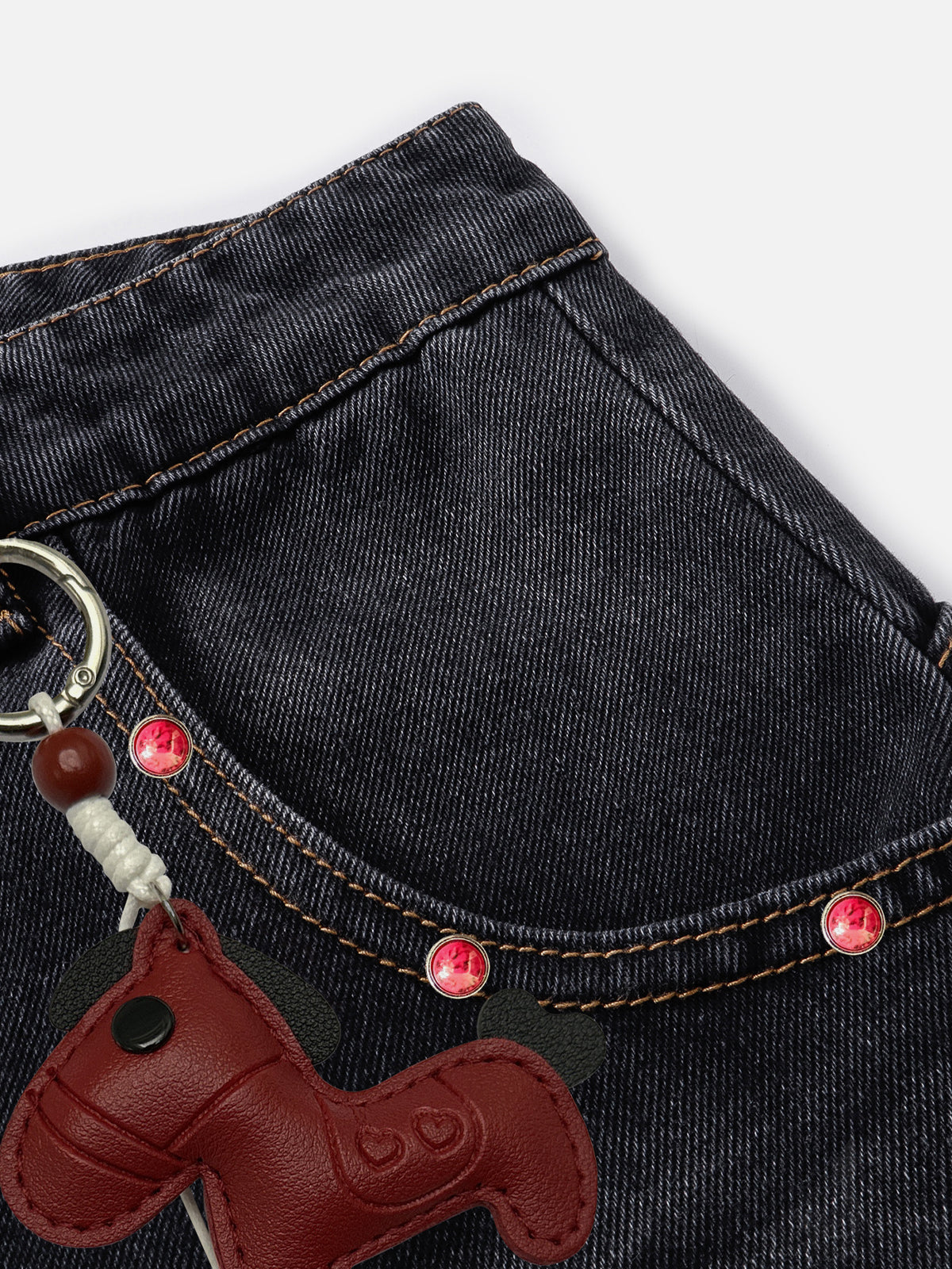 Clothing details: Studded, Keychain.