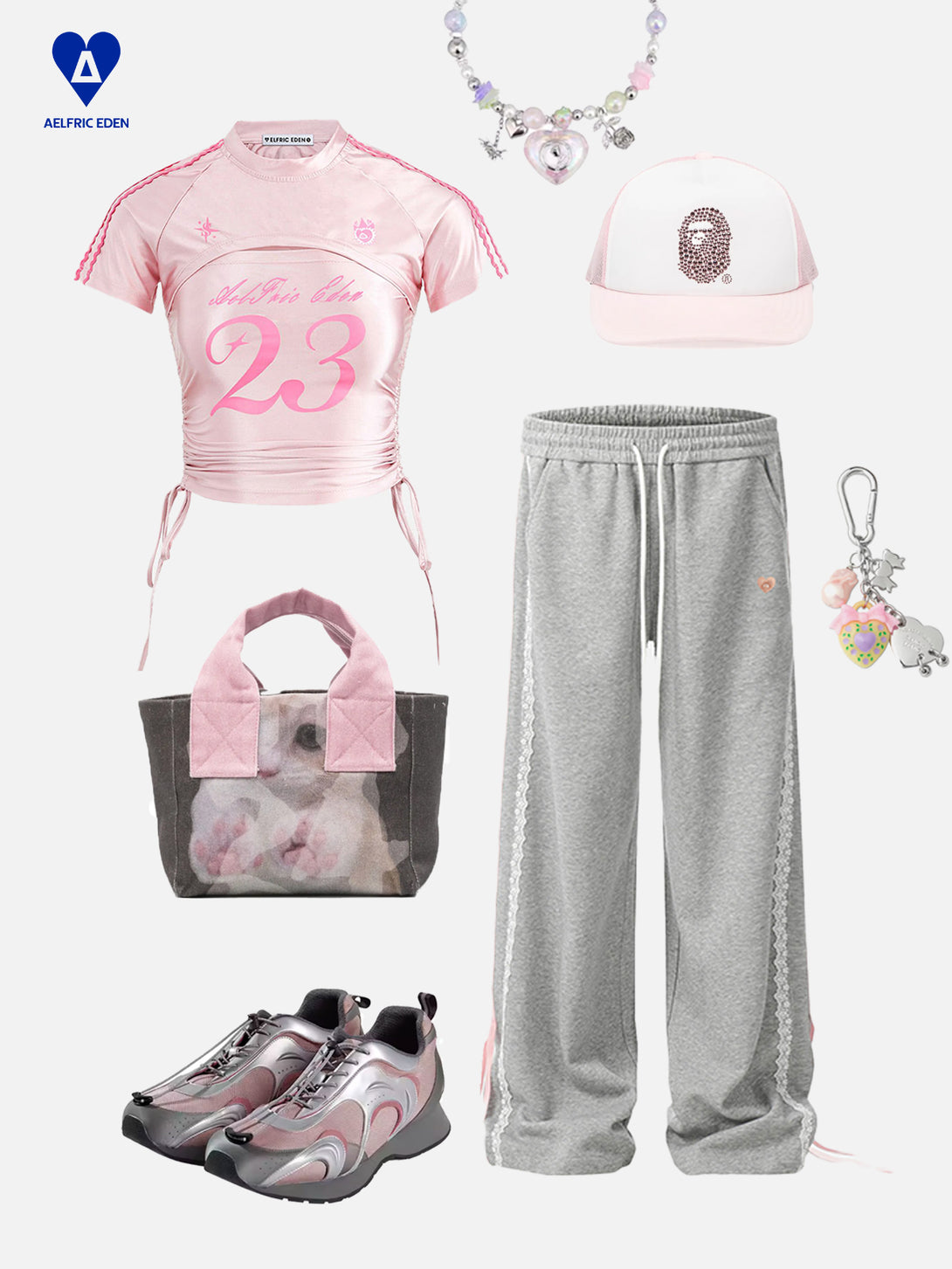 Aelfric Eden Jogginghose mit Spitzenstreifen und Patchwork