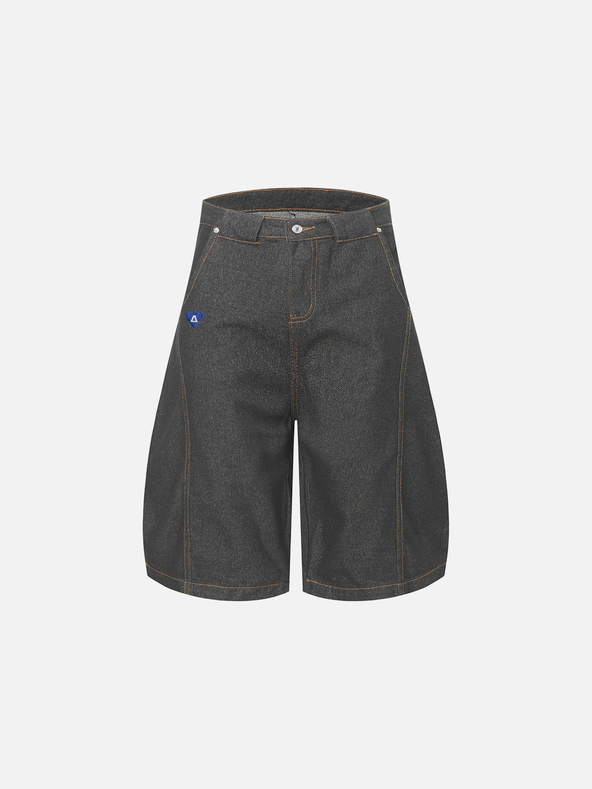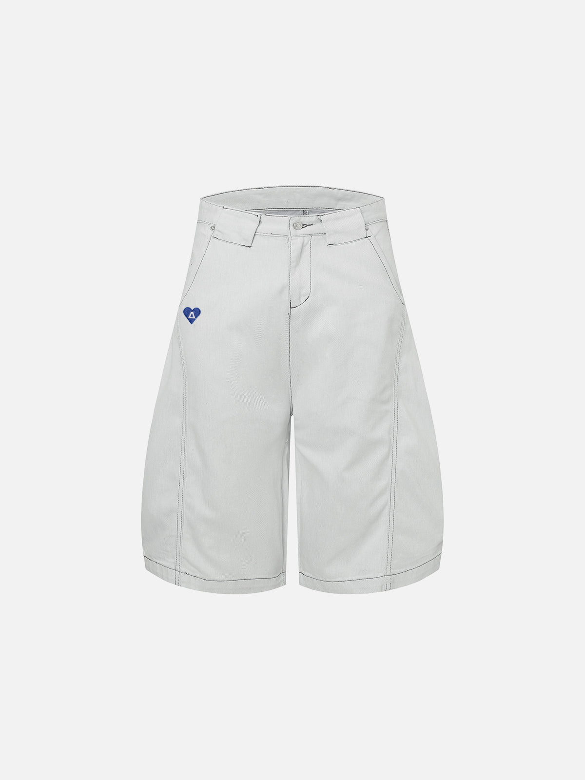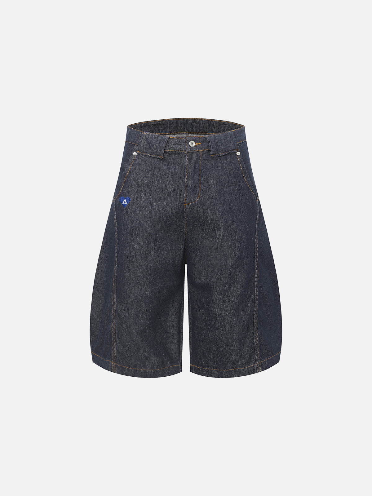 Cut in an extended longline length, these jorts feature a clean raw denim finish with subtle tonal depth. Minimal fading keeps the surface sharp, while contrast stitching defines the structure. Finished with a small heart logo detail for a refined signature touch.