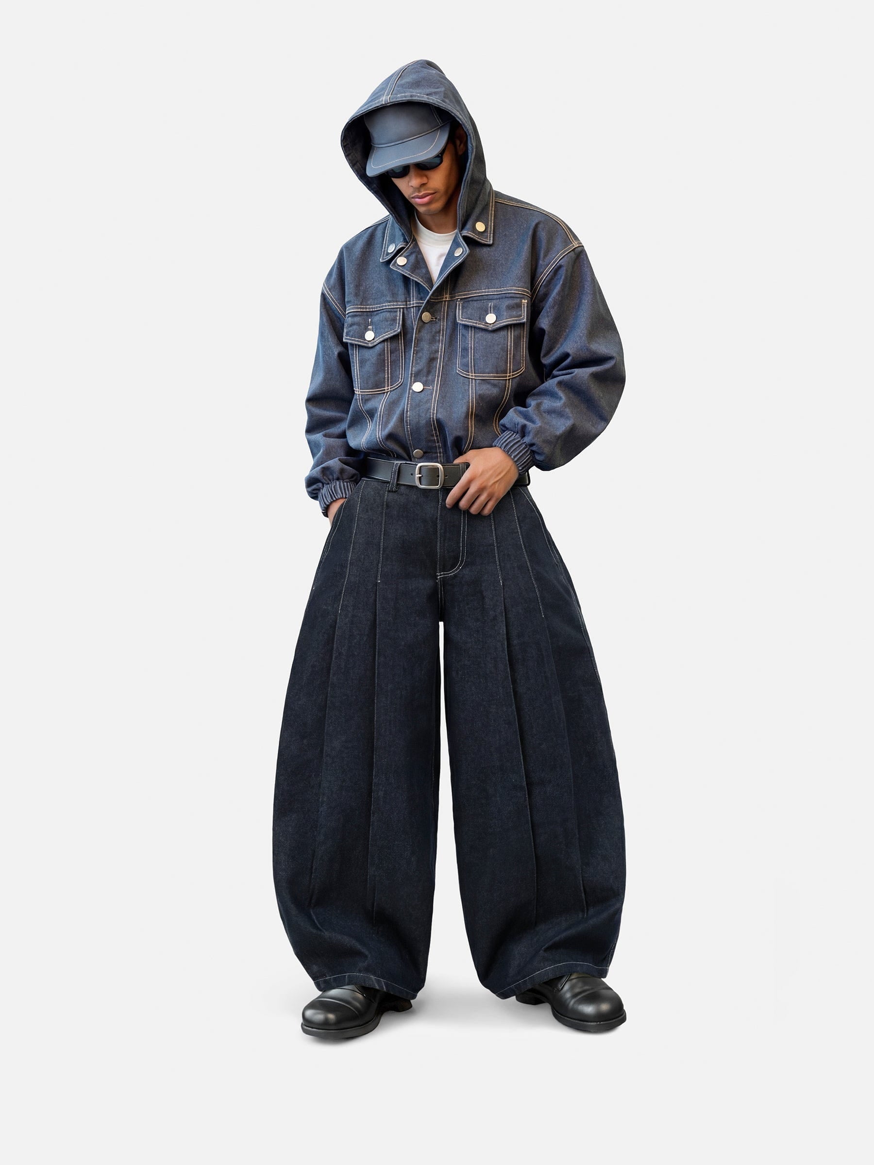 Embrace effortless cool with our Baggy Barrel Pleated Jeans—the ultimate streetwear staple that combines relaxed silhouette with refined tailoring. Featuring distinctive front pleats and a generous barrel cut, these jeans deliver that coveted oversized aesthetic while maintaining structure and movement. Crafted for all-day comfort, they pair seamlessly with everything from oversized tees to fitted layers. Perfect for those who refuse to compromise between style and ease.