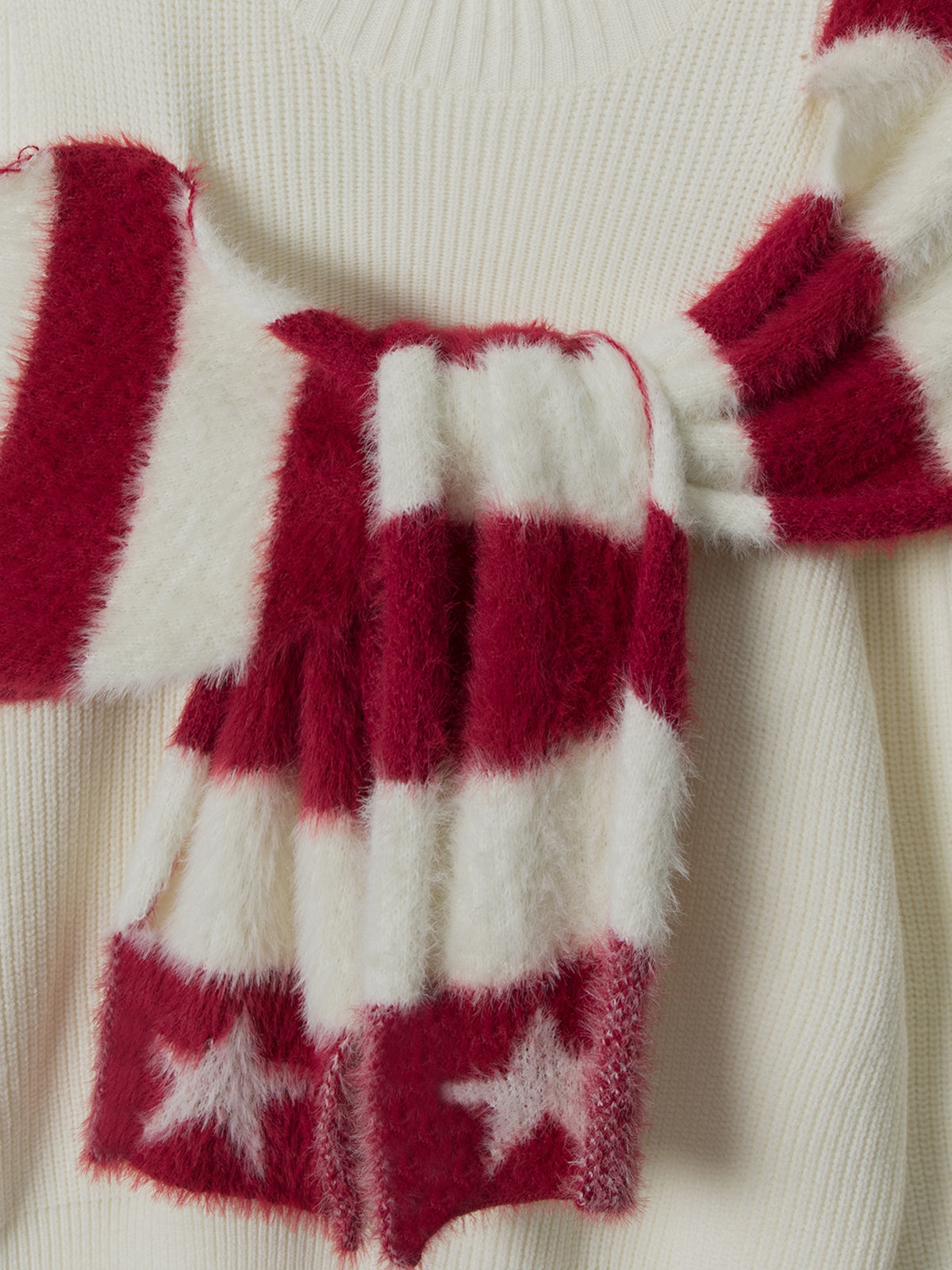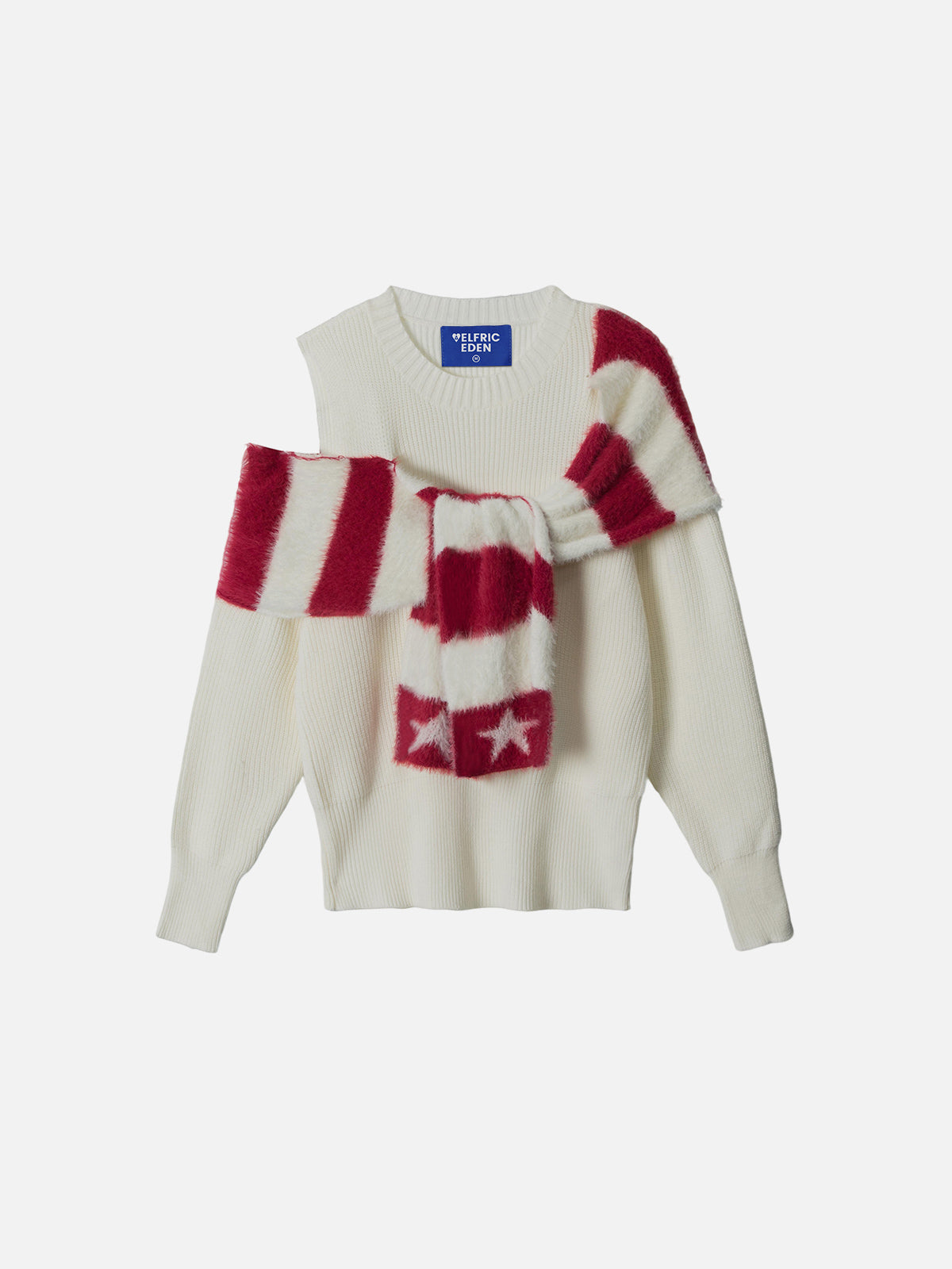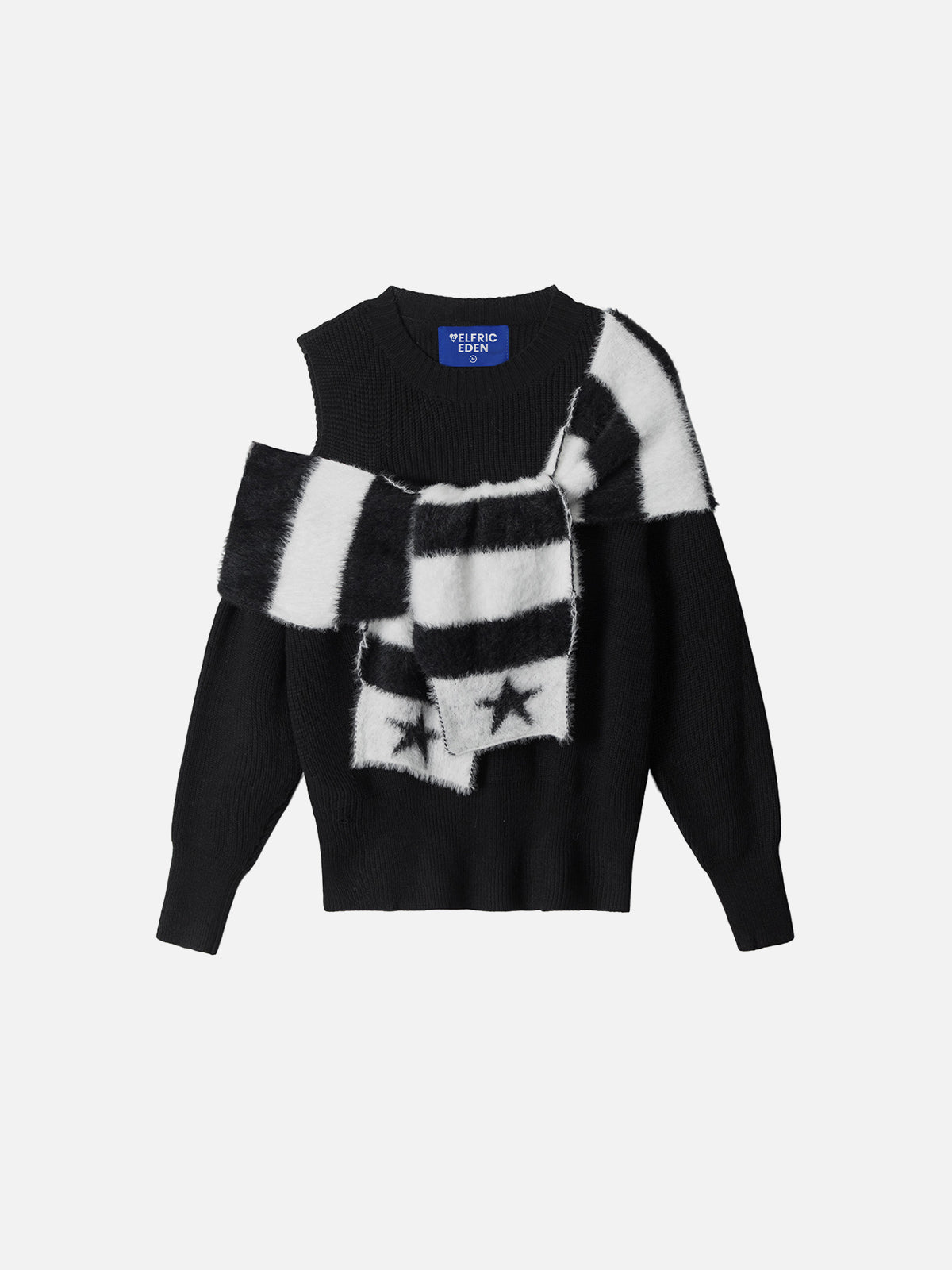 The Aelfric Eden Scarf Knit Sweater blends cozy texture with playful detail. The built-in scarf design pops with bold striped color blocking, while the cute star accents add a fun, standout touch. Soft, warm, and effortlessly stylish—perfect for creating an easy statement look with zero extra effort.