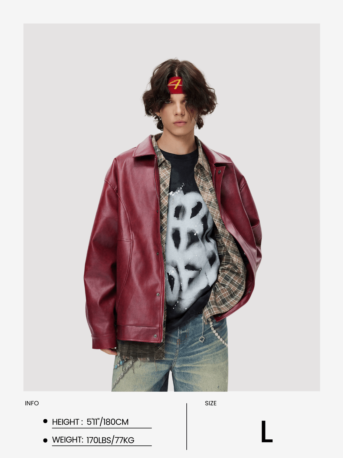 Diese auffällige Jacke zeichnet sich durch eine burgunderfarbene Retro-Farbe aus. Ihr starkes Gewicht erinnert an die Eleganz der Retro-Ära, während das moderne Design ihr eine modische Atmosphäre verleiht. Sie besteht aus hochwertigem Kunstleder mit strukturierten Verzierungen. Fügt eine einzigartige Textur hinzu. Diese Jacke kombiniert die perfekte Balance aus Moderne und Retro und zeigt den Charme von Mode und Eleganz.