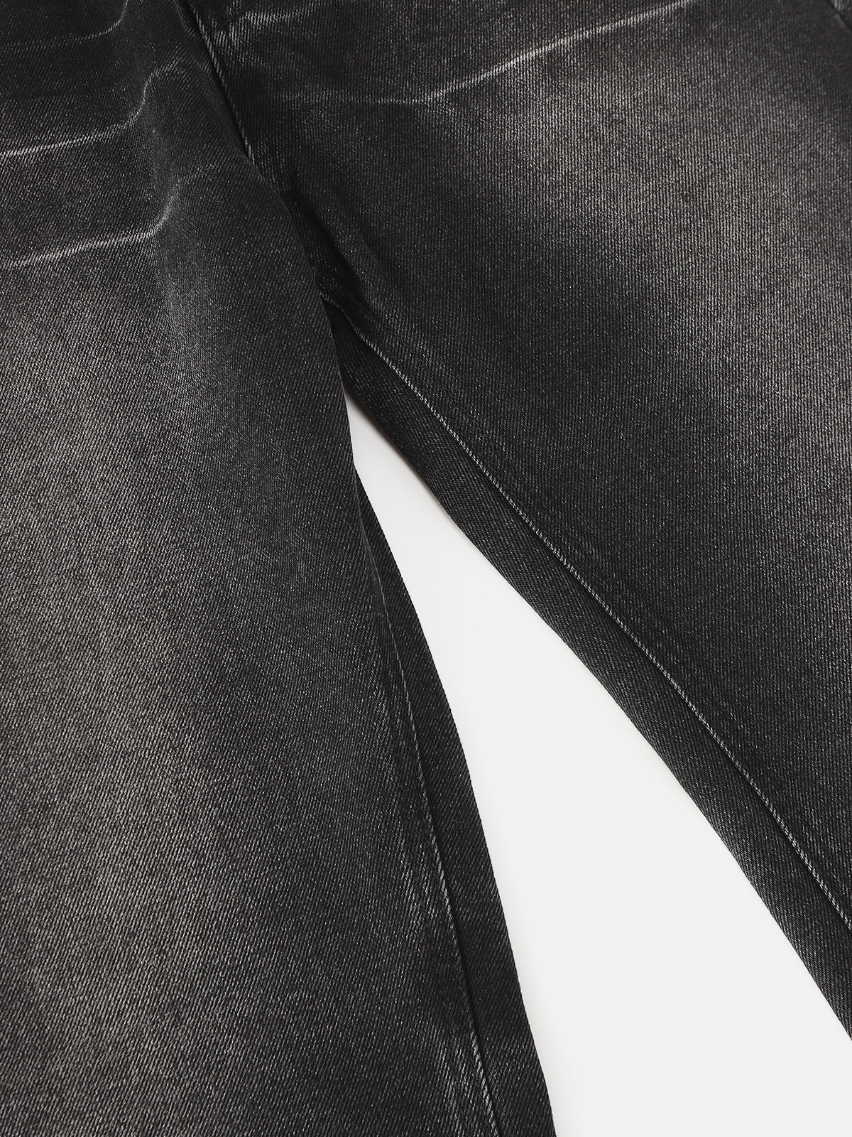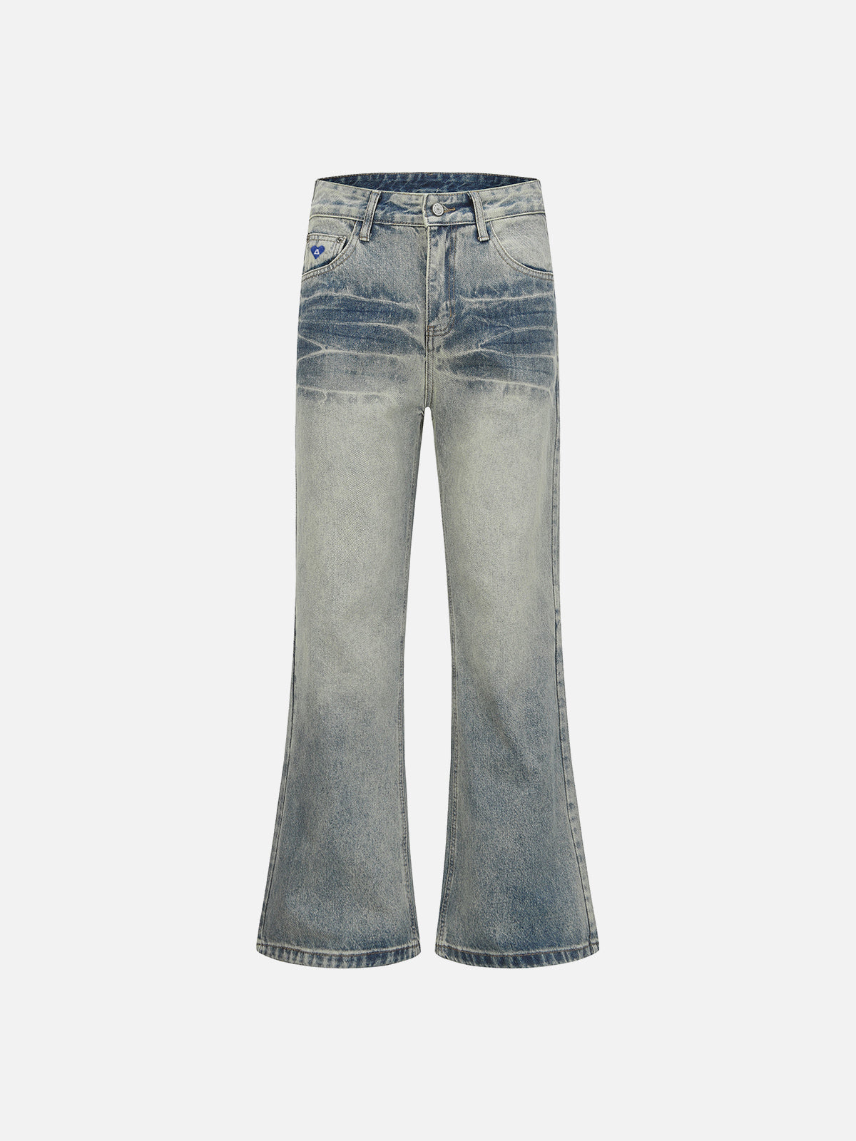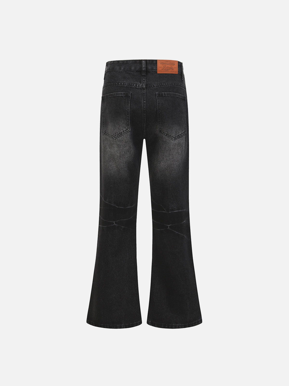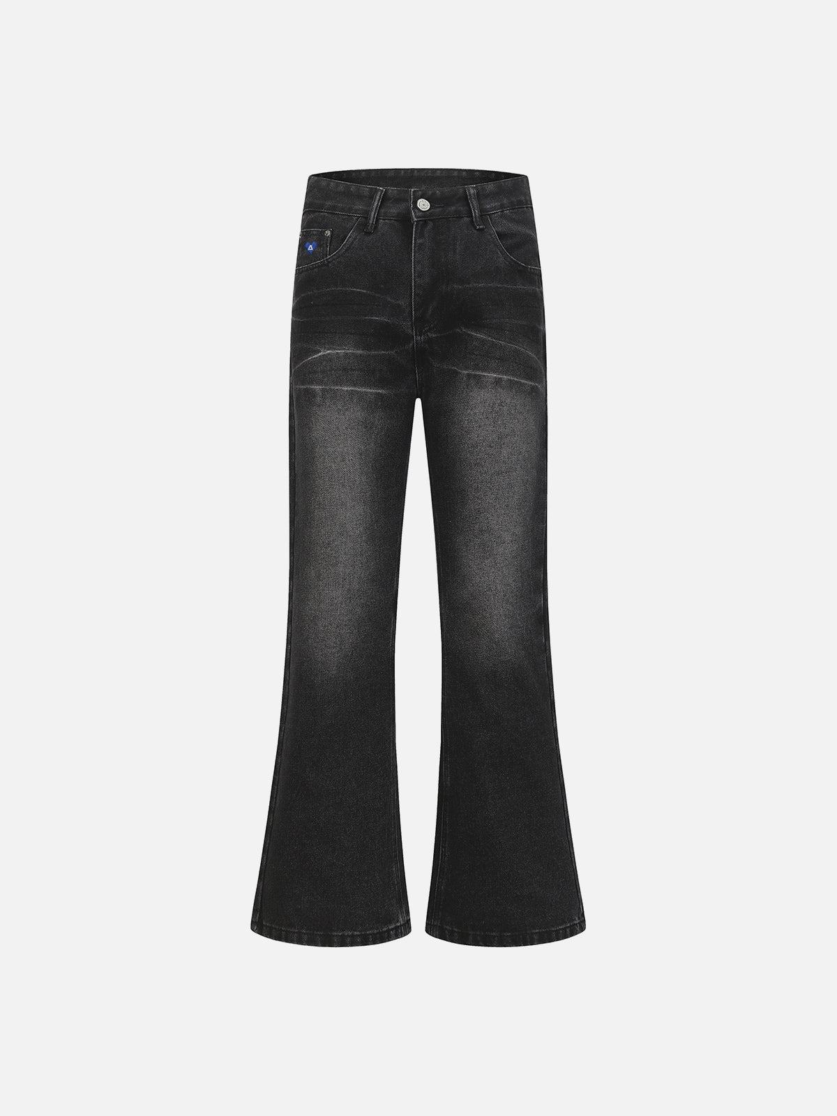 Designed in a bootcut silhouette with a high-contrast washed finish and defined whisker detailing across the upper leg. The subtle fade transitions into a softly flared hem, creating a clean line from knee down. Structured denim construction maintains shape while adding depth to the overall look.