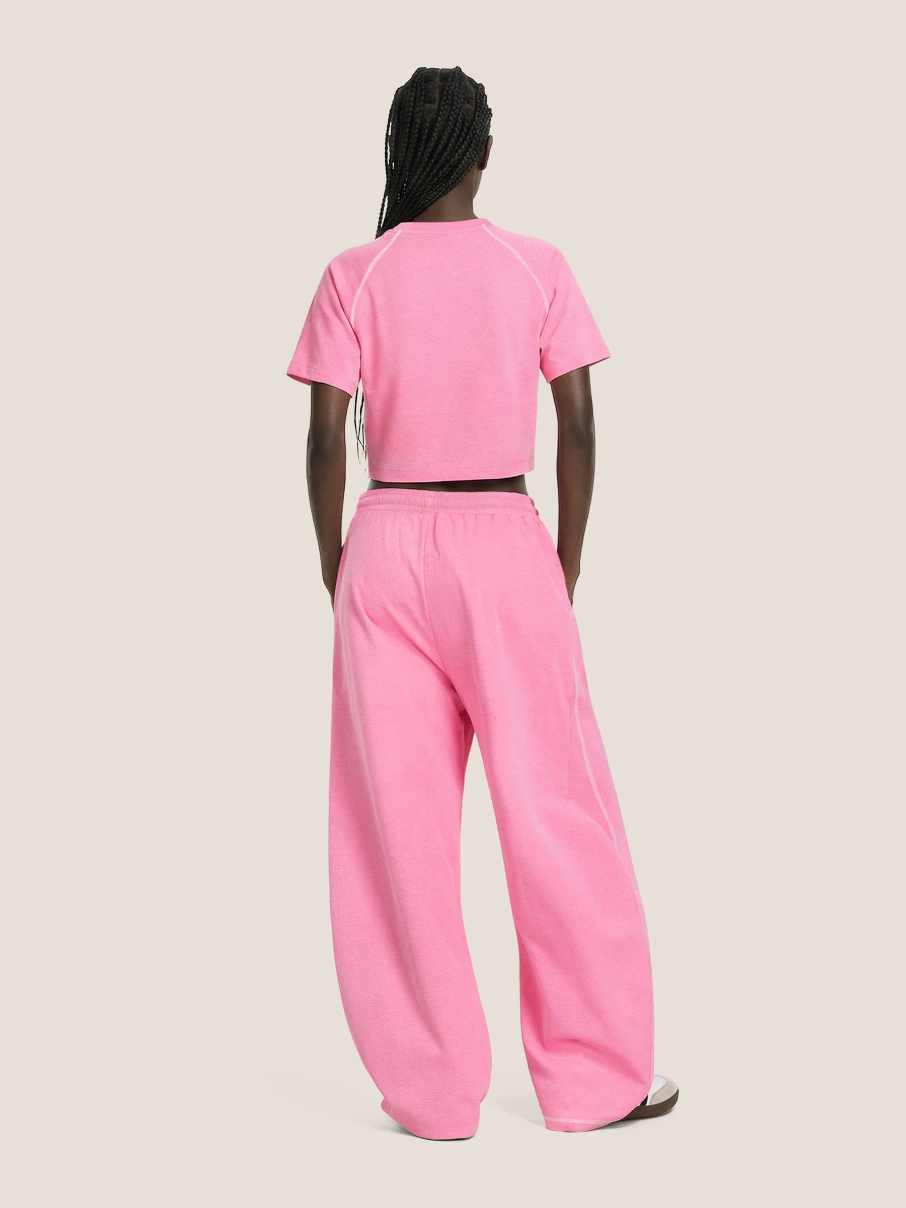Introducing our Cloud Spring/Summer series—designed to feel light, breathable, and easy to wear. Crafted from a lightweight, airy fabric with soft drape, this cropped top and relaxed pants set creates a clean, balanced proportion without feeling restrictive. The cropped top naturally lifts the silhouette while the baggy barrel pants keep the look fluid and comfortable. Finished with a clean, street-forward edge, it treats a sports set as a style choice, not just something to wear.