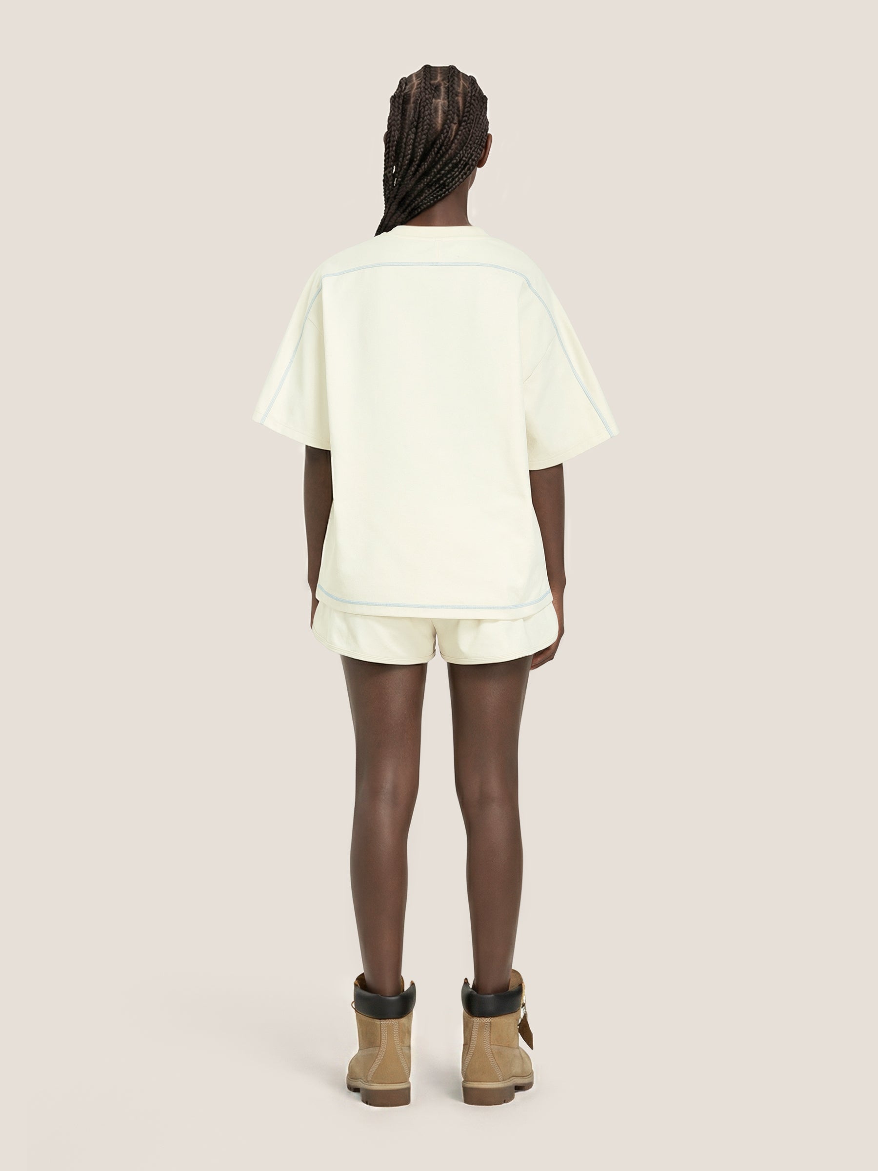 Introducing our Cloud Spring/Summer series—designed to feel light, breathable, and easy to wear. Made with a lightweight, airy fabric that drapes naturally, this relaxed tee and shorts set feels cool and comfortable without clinging or weighing you down. The loose silhouette keeps things effortless and easy, perfect for warmer days. Finished with a clean, street-forward edge, it treats a sports set as a style choice, not just something to wear.