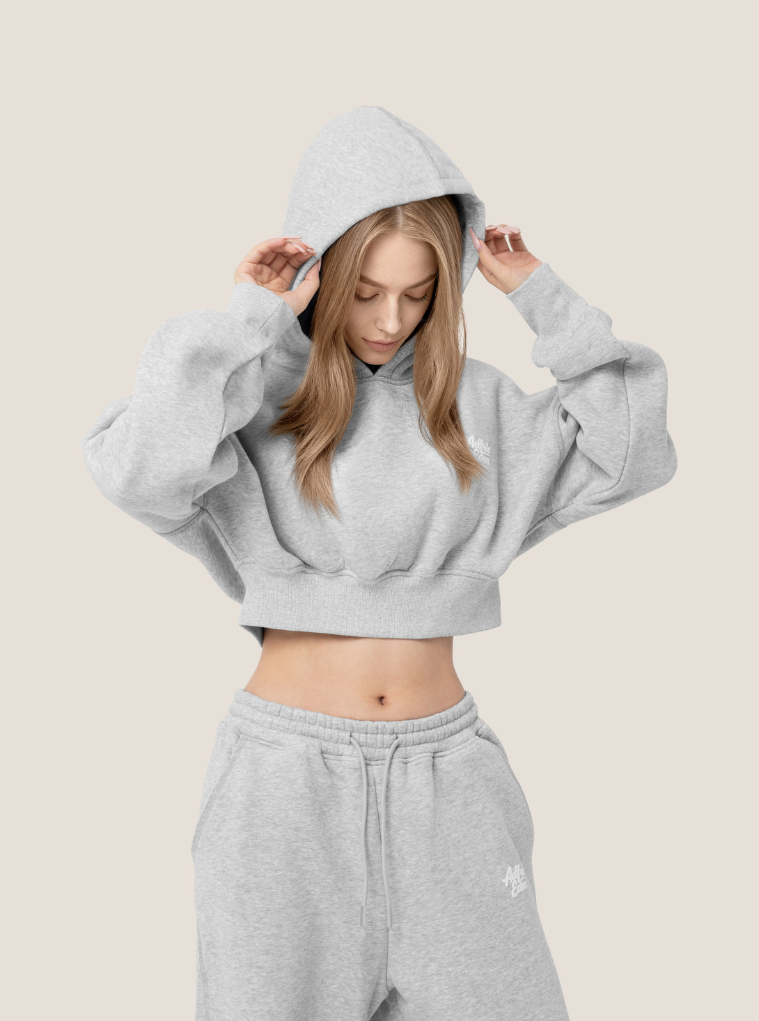 Cloud Essential Fleece Cropped Pullover Hoodie Set